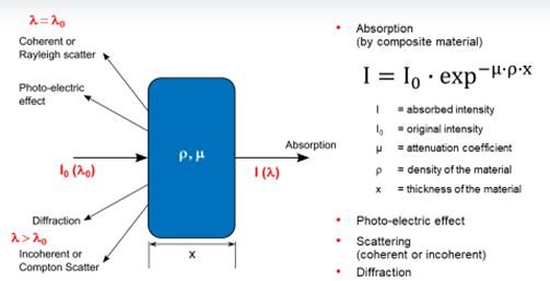 一束X射線通過物質(zhì)時,就能量轉(zhuǎn)換而言,它的能量分為三部分:散射(改變前進方向:相干散射、非相干散射),吸收(產(chǎn)生光電效應(yīng):熒光X射線、俄歇電子)和熱效應(yīng)。